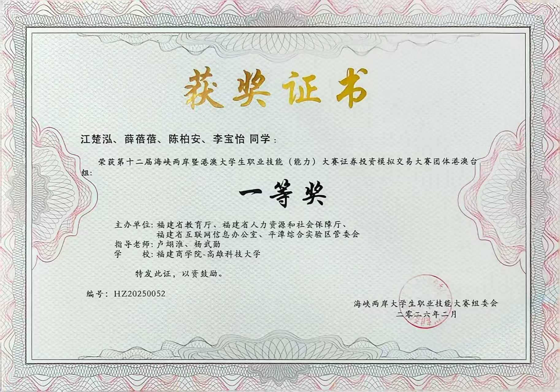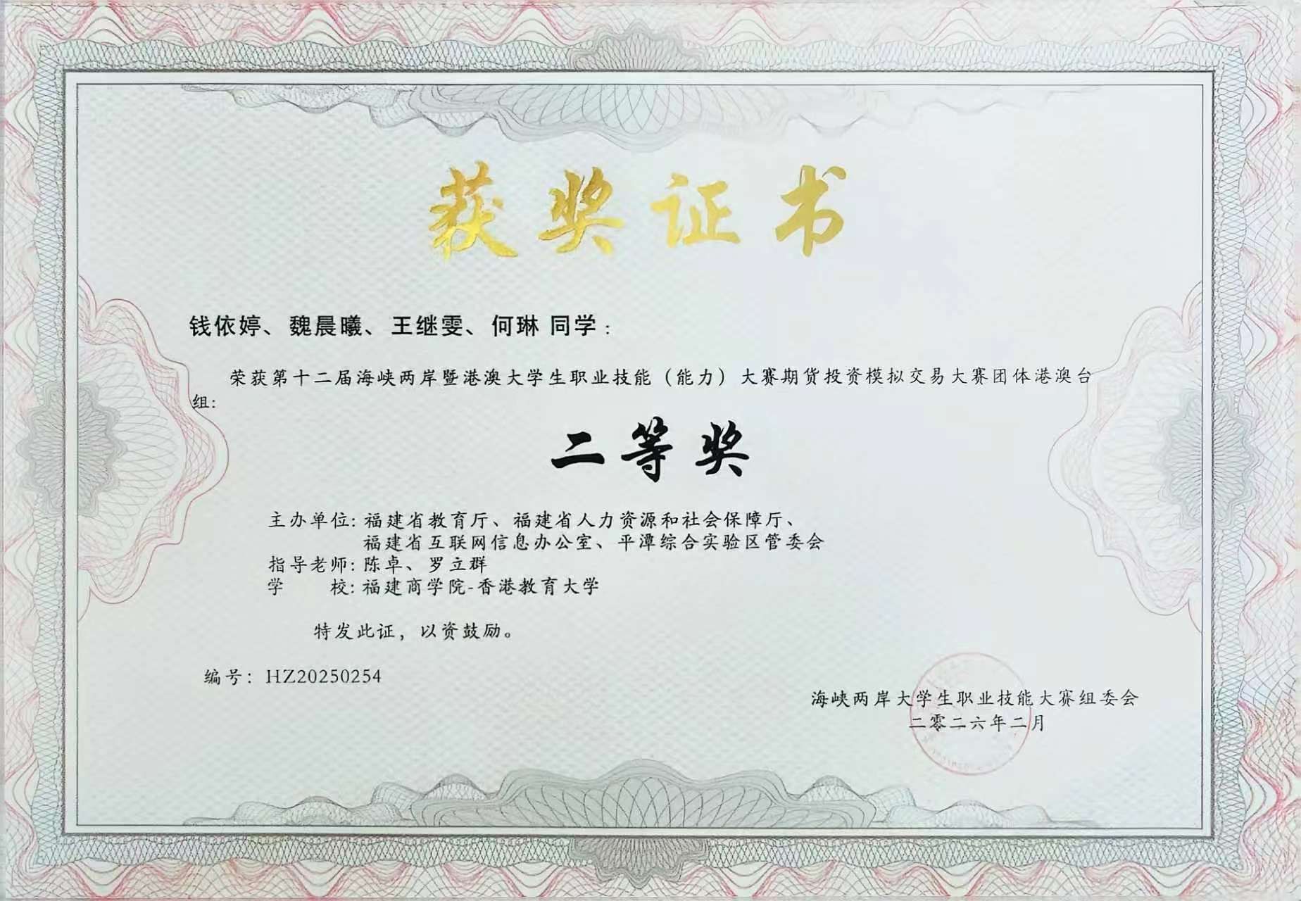 经过多轮激烈比拼,我院学子在证券投资、期货交易、人力资源管理、数智国际贸易、财务决策及创新创业成果展等多个赛道表现亮眼,最终斩获一等奖2项、二等奖7项、三等奖7项,另有30余个项目获得优秀奖,实现了多赛项、多层次全面开花。